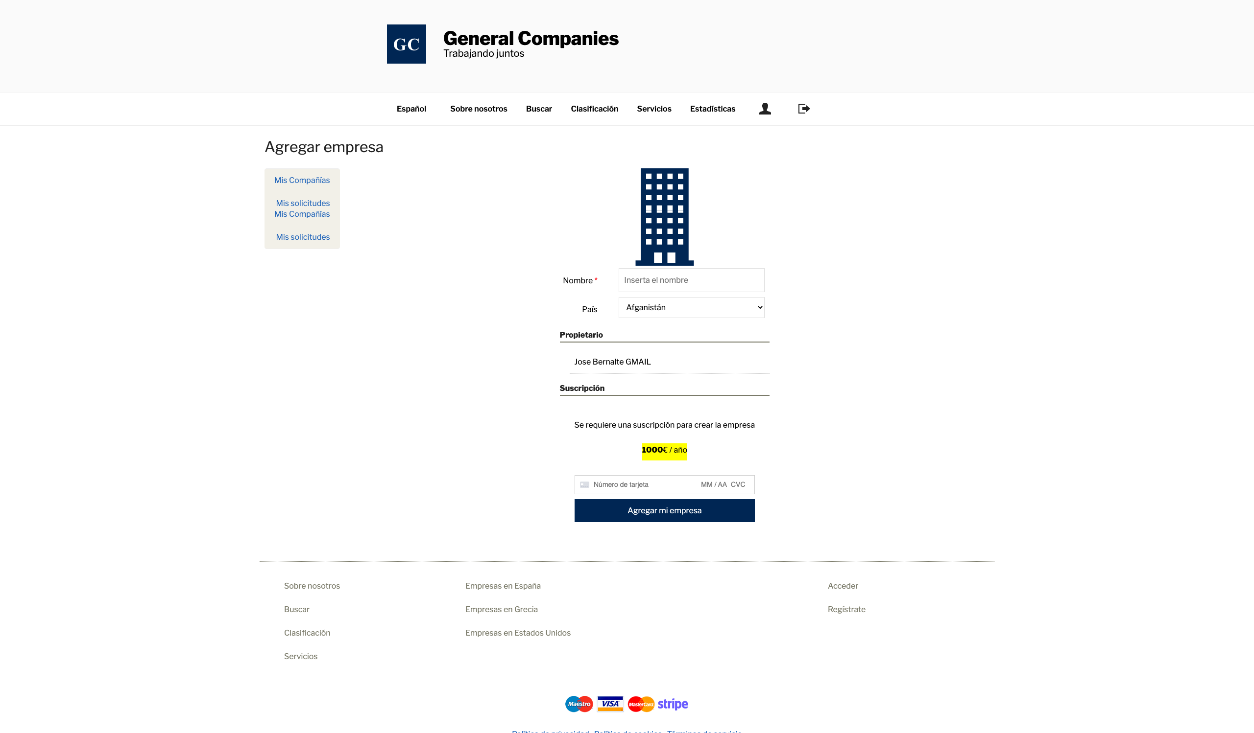 El desarrollo de la web para General companies consistía en crear un proyecto web de directorio de empresas donde cualquier empresa a nivel nacional o internacional pudiese suscribirse para la incorporación o modificación de sus datos a cambio de una cantidad económica. Este precio establecido es el encargado de filtrar buenos de malos suscriptores, permitiendo conseguir un portal clasificado de empresas de alta calidad de todos los sectores y a nivel mundial.